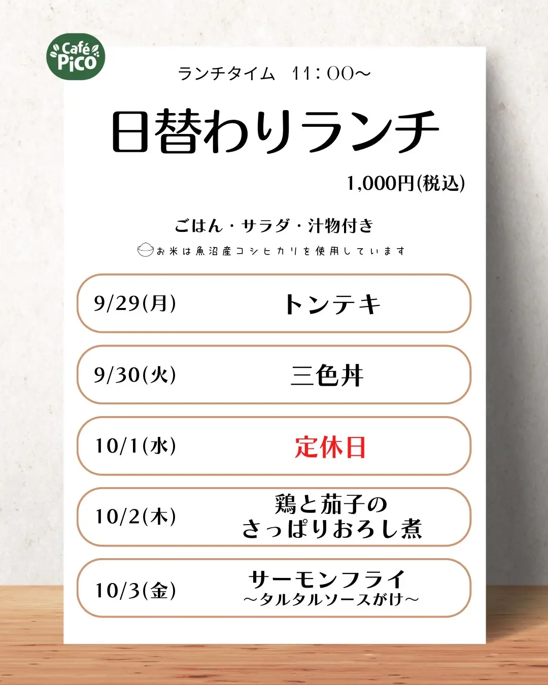 土日限定メニュー